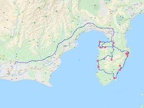 浜松からだと、13ヶ所を回る全行程は540kmにもなります。